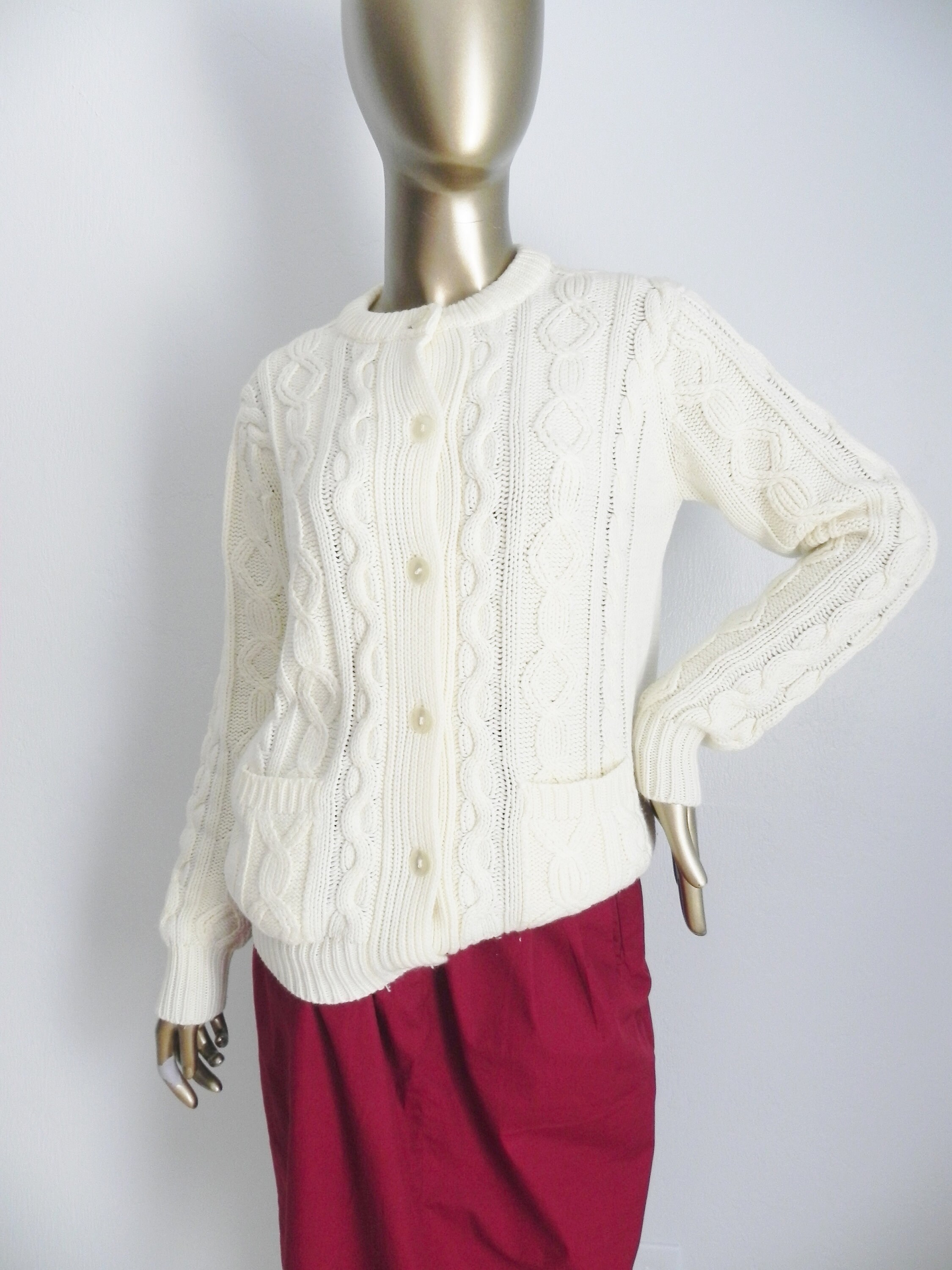 Vintage Cream Chunky Knitted Cardigan Miss Pigeon Vintage